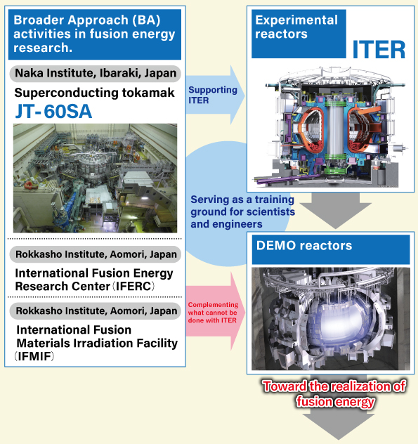 Based on the Broader Approach Agreement, which entered into force on June 1, 2007, these activities complement the ITER project while accelerating R&D toward electricity generation using future DEMO reactorss (DEMO).