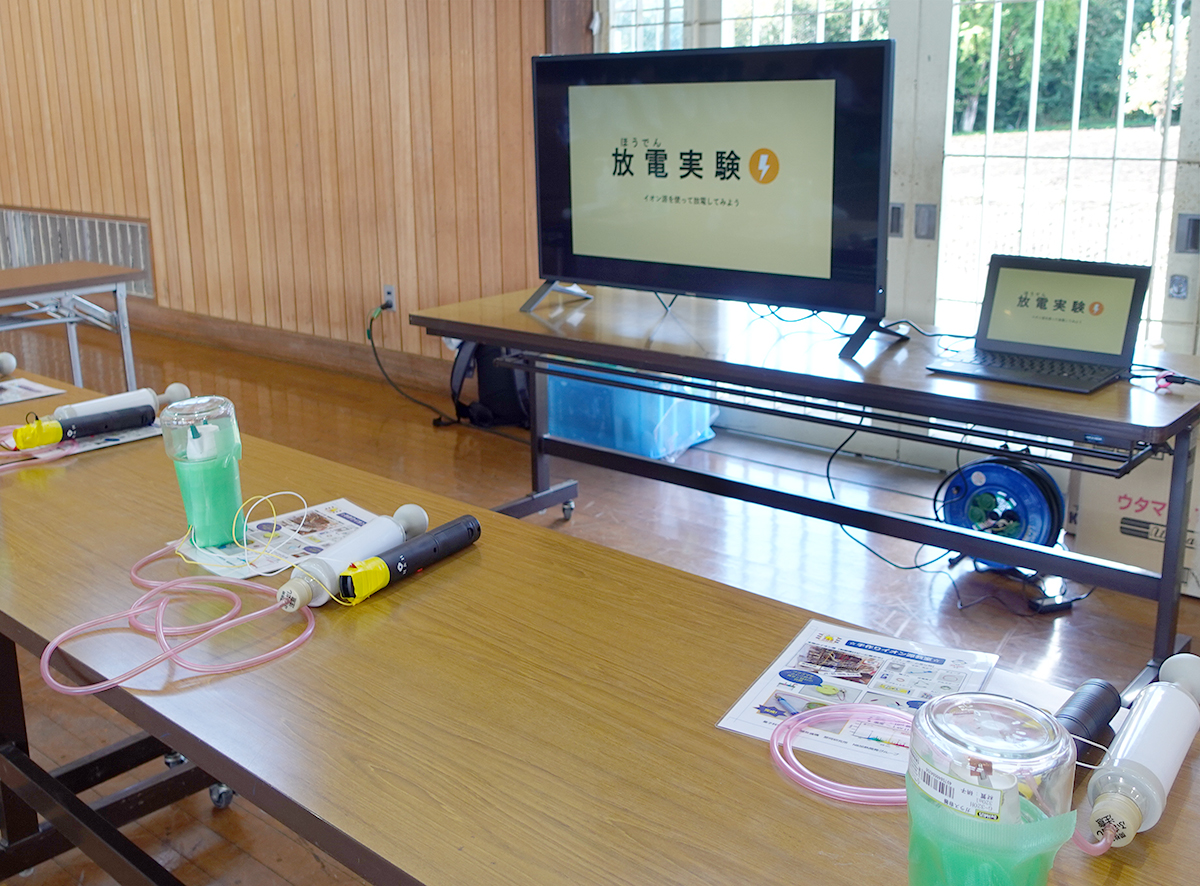 放電の瞬間、ピンク色の光がふわっと広がると「わあっ!光った!」と歓声があがりました。