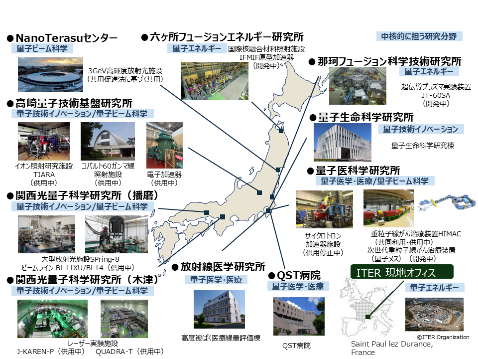 QSTの研究所と主な量子科学技術基盤施設・装置(QST|第2期中長期における研究開発 より)
