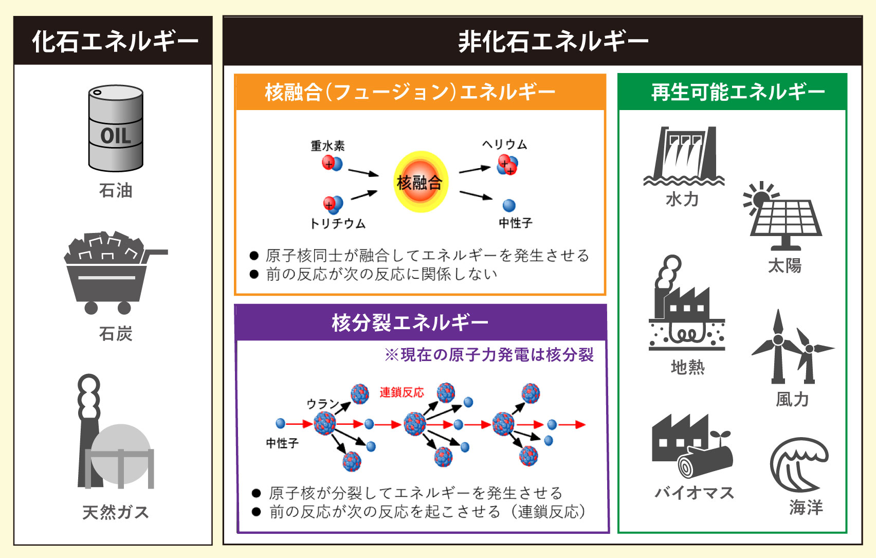 「核融合(フュージョン)エネルギー」は、非化石エネルギーに属します。