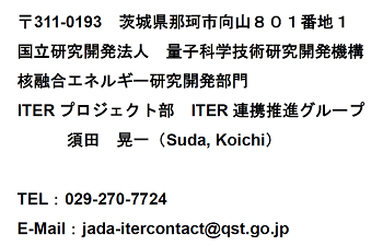 応募書類は、量研機構で取りまとめてITER機構へ送付しますので、電子メール添付にて応募書類の電子ファイルを下記へお送り下さい。